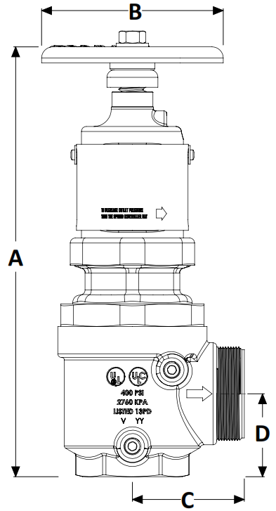 • Maximum inlet pressure up to 400 psi (2758 kPa)