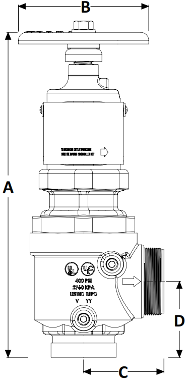 - Maximum inlet pressure up to 400 psi (2758 kPa)